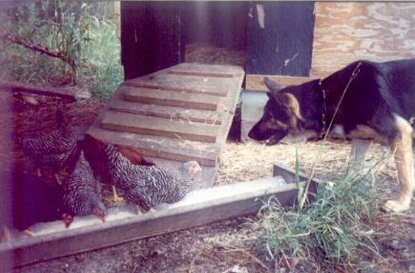 over 1 meter jump.(left) Kora guarding chickens. (right)