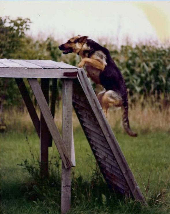 over 1 meter jump.(left) Kora guarding chickens. (right)